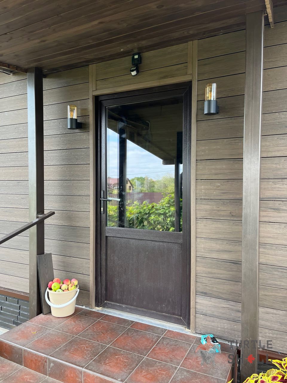 Террасная доска Turtle Shell - 55% древесного волокна, (твердые лиственные породы дуб, ясень, клен, тополь) 40% ПЭВП, 5% добавок, включая краситель.