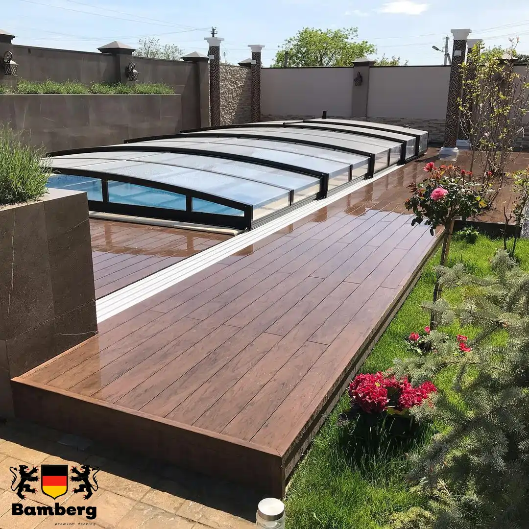 Террасная доска Bamberg Square African Bubinga (Африканская бубинга) - это высококачественный материал, который идеально подходит для обустройства террас, балконов и других открытых пространств. Эта доска изготовлена из древесно-полимерного композита (ДПК), который сочетает в себе прочность дерева и долговечность пластика.